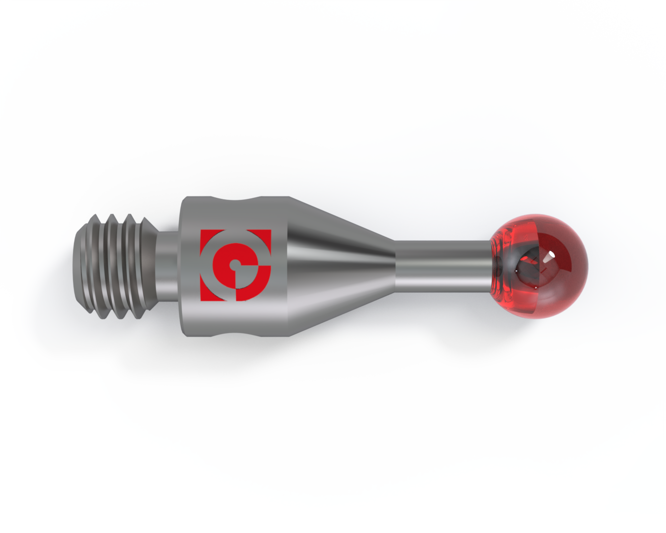 A Haste em aço inox, não magnético, oferece rigidez ideal em relação ao seu peso e por ser usinada numa unica barra não há junções do corpo da ponta com a base da rosca. Para essa ponta o diâmetro mínimo de esfera é Ø.1,0 mm e comprimento de até 30 mm.